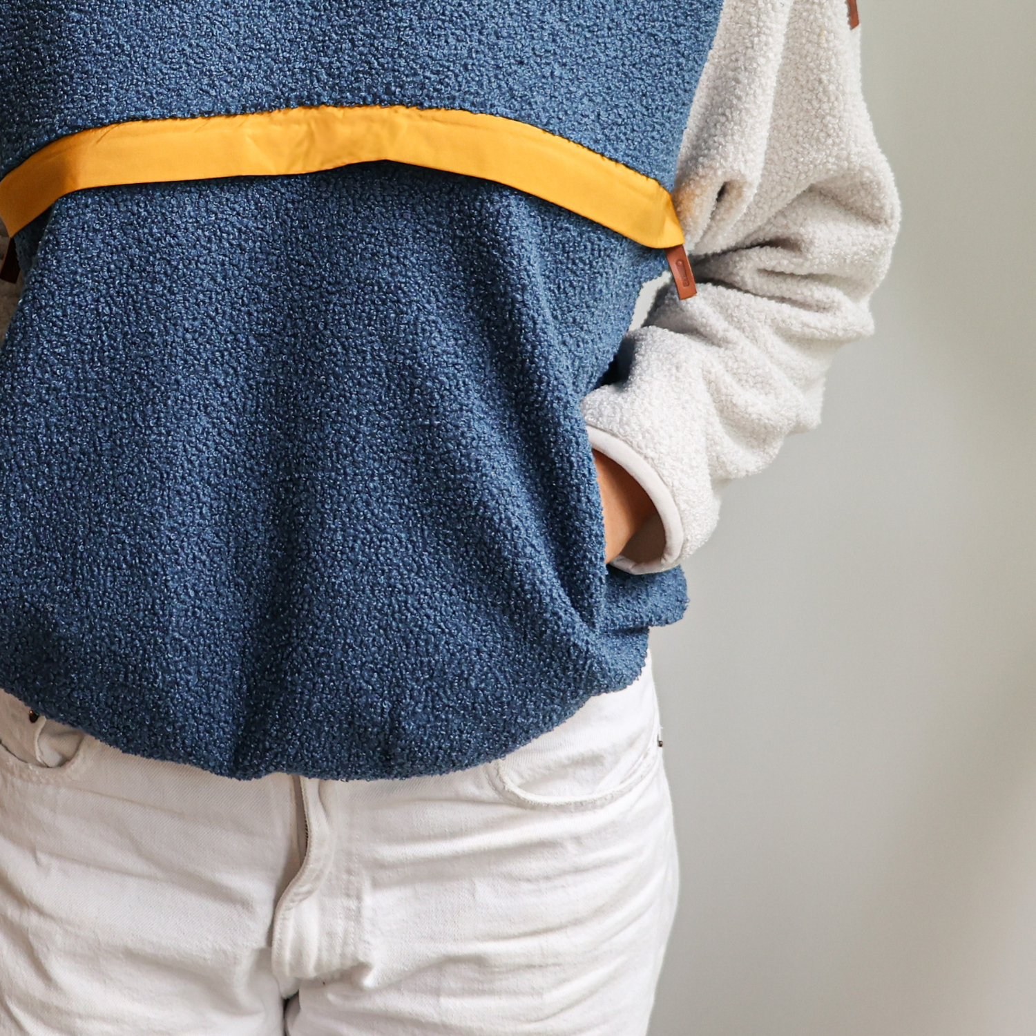 نوصي بغسل الأقمشة الصوفية التي نقدمها في غسالة باردة وتجفيفها على خيط. يرجى التأكد من تثبيت السحاب قبل الغسيل.