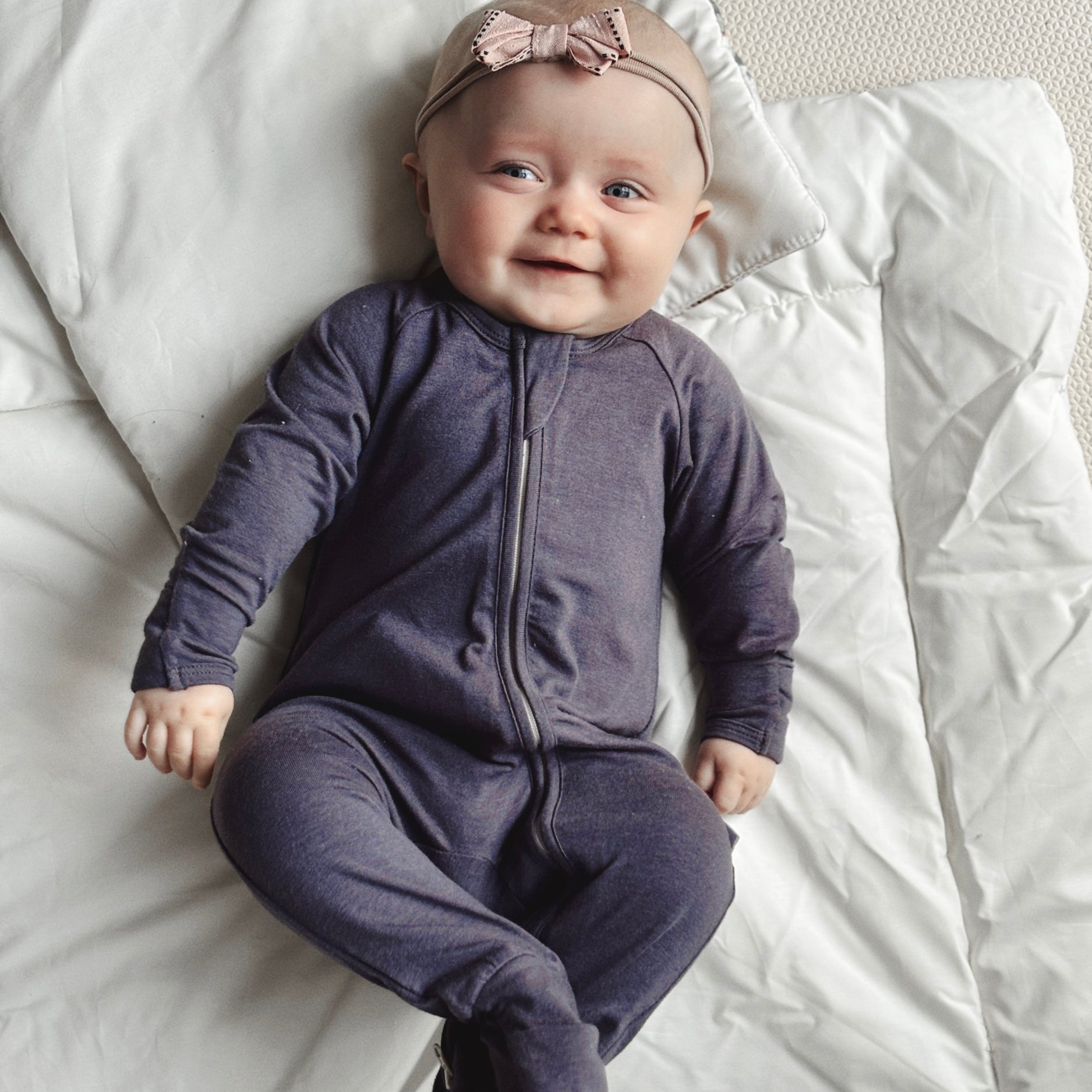 Aufgrund der empfindlichen Beschaffenheit unseres luxuriösen Bambusgewebes sollten Sie es vermeiden, das Kleidungsstück zusammen mit Artikeln zu waschen, die Reißverschlüsse, Knöpfe oder Beschläge haben, da es sonst zu Verwicklungen kommen kann. Waschen Sie sie am besten separat mit anderen Babyartikeln.