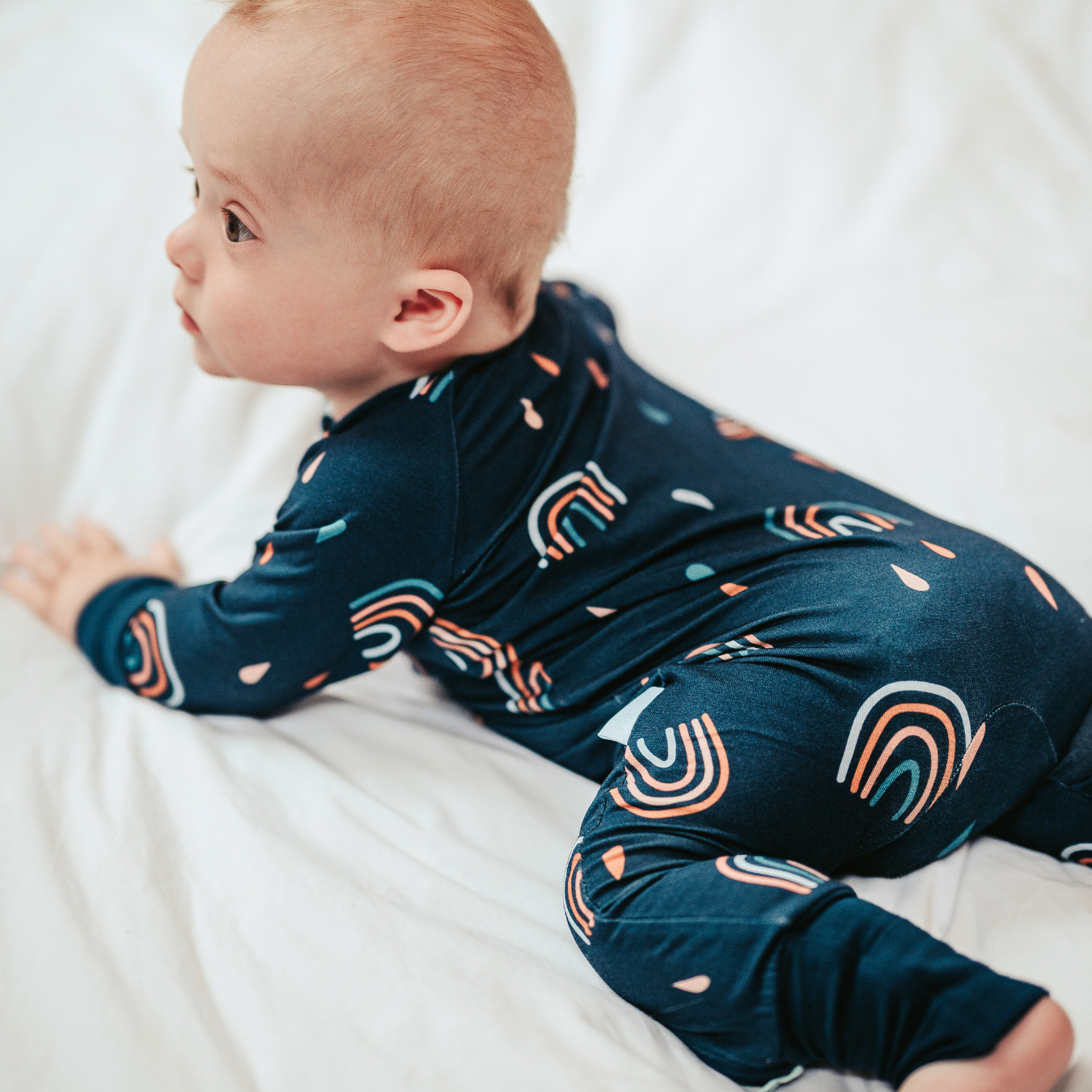 A causa della natura delicata del nostro lussuoso tessuto di bambù, si prega di evitare di lavarlo con articoli dotati di cerniere, bottoni o ferramenta, in quanto potrebbero verificarsi degli strappi. Per una cura ottimale, lavare separatamente con altri articoli per bambini.